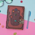vintage handmade leather journal. Crafted with genuine leather, it radiates authenticity and charm, perfect for those who appreciate classic craftsmanship. The premium antique lock closure adds a touch of elegance and security, ensuring your thoughts and memories are safeguarded within its pages. Inside, you’ll discover 200 brown handmade pages, providing ample space for your musings, sketches, and stories to unfold. Whether it’s for journaling, sketching, or planning, this versatile journal is a timeless companion for your creative endeavors. Treat yourself or a loved one to this exquisite piece, a celebration of tradition and creativity